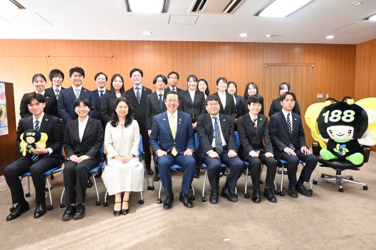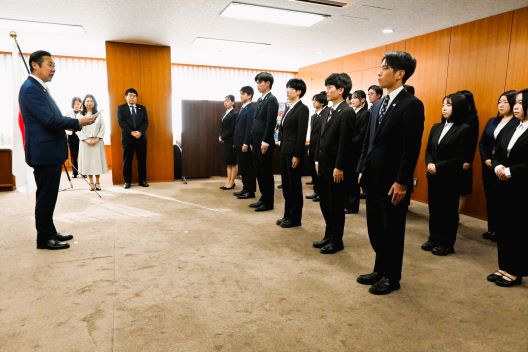 黄川田大臣から、入庁をお祝いするとともに、「消費者庁の使命は、消費者行政の司令塔として、消費者が主役となって、安心して安全で豊かに暮らすことができる社会を実現することであり、消費者の安心・安全を守り抜き、消費者からの期待に応える立場であるという自覚を強く持ち、一日も早く消費者行政のプロに育つことを期待する」旨の訓示を行いました。