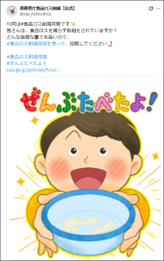 - 消費者庁「食品ロス削減」公式X(旧 Twitter)ページはこちらから