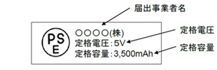 - ※2:モバイルバッテリーに付されるPSEマークの例