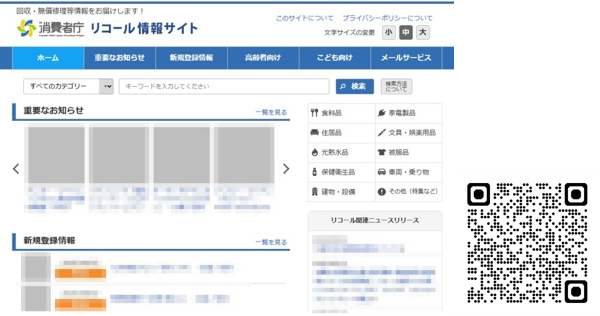 - ※3:購入前に加え、購入後も定期的に「消費者庁リコール情報サイト」、独立行政法人製品評価技術基盤機構(NITE)のリコール情報などの検索サイトである「SAFE-Lite」 や事業者のウェブサイトなどを確認するようにしましょう。