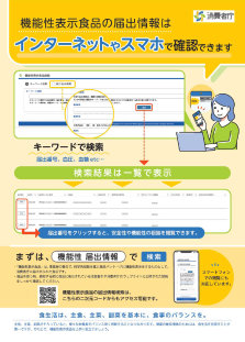 - 機能性表示食品については、事業者が消費者庁長官に届け出た内容(安全性及び機能性の根拠に関する情報、生産・製造及び品質の管理に関する情報等)は、消費者庁ウェブサイトで誰でも確認できることとしています。